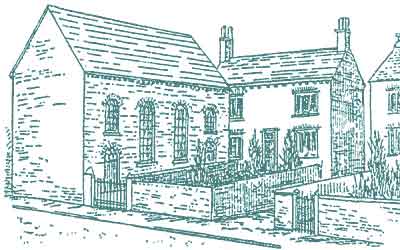 Left, the first Moravian Church in Dukinfield, dating from 1751, & right, the Sunday and Day School dating from 1853. Both on Old Rd, Dukinfield.