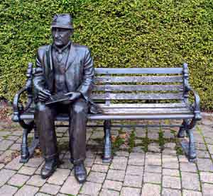 This statue of L S Lowry seated on a bench, sketching, was unveiled on the 10 Jul 2007. It is situated in Mottram-in-Longdendale at the junction of Stalybridge Rd and Hyde Rd.