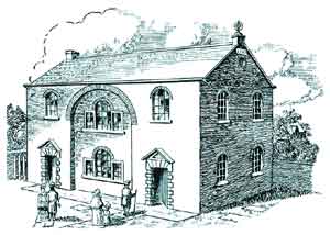 This chapel was located in Audenshaw Village on the east side of Taylor Ln. The datestone in the gable end is for 1782 and it opened in 1783. It was demolished in 1877 to facilitate the construction of Audenshaw Reservoirs. It was on the site for Reservoir No. 3.