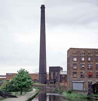 This former cotton-spinning mill is located on Cavendish St beside the Ashton Canal with Bank St on the opposite side to the canal. It was built in 1884/85 for the Cavendish Spinning Co Ltd and the architects for its design were Potts, Pickup, and Dixon of Oldham and the contractors were Storrs, Sons & Co Ltd of Stalybridge. The mill is 6-storeys high facing the canal and 5-storeys high on Bank St, with a flat roof. It is especially is notable for its innovative industrial design and distinctive octagonal staircase that wraps around the chimney stack. Curiously, the chimney has two rings near the top, which was the trademark of the renowned architect Sir Philip Sidney Stott of Oldham. It was the first mill in Ashton to use concrete floors resting on steel girders instead of traditional brick arches supported by cast-iron columns, a major innovation at the time.
